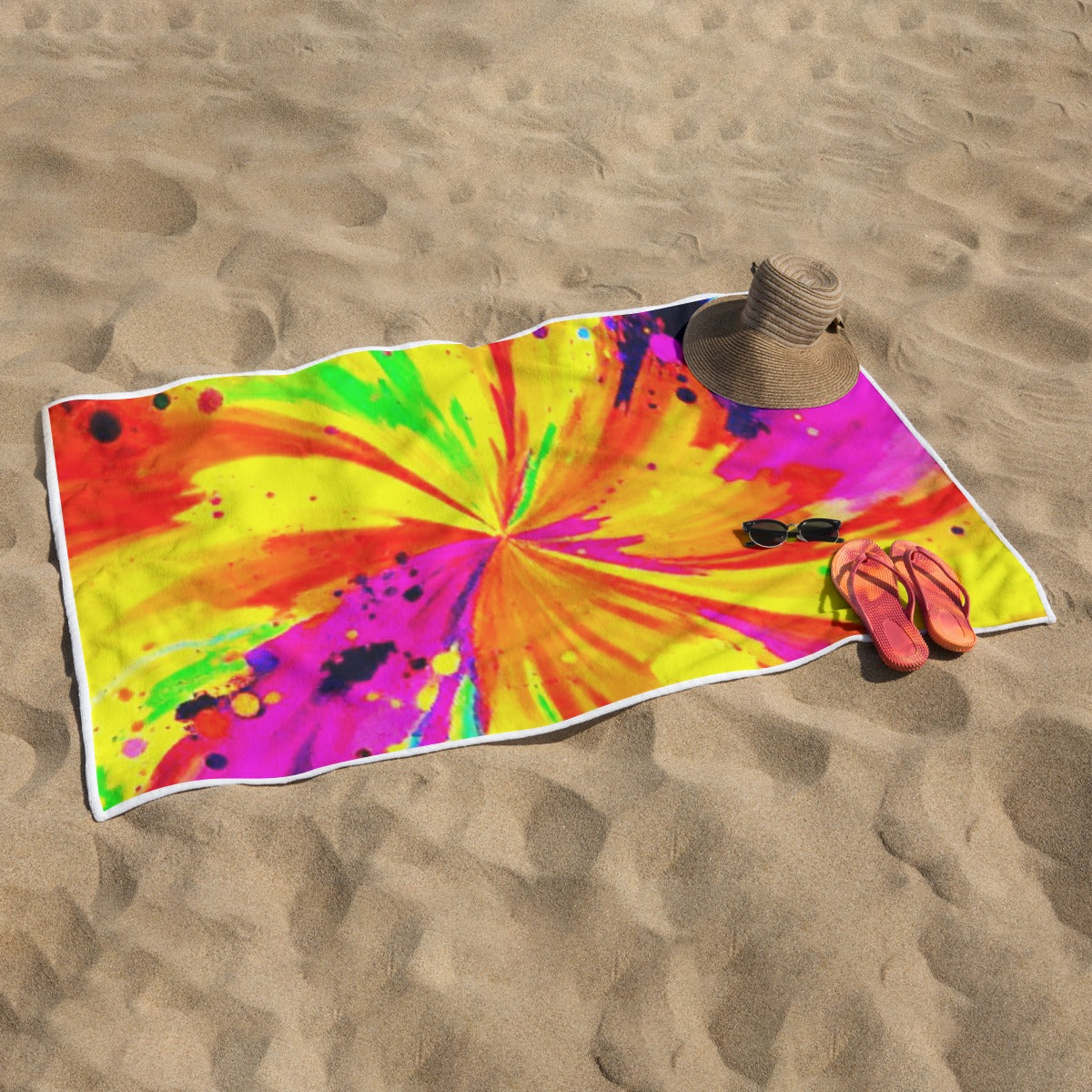 Soak up the sun in vibrant style with the KG Fit Rectangular Beach Towel. Whether you're lounging at the beach, relaxing by the pool, or heading to a music festival, this towel adds a bold and artistic touch to your summer essentials. The eye-catching psychedelic pattern brings retro flair to any outdoor setting, making it perfect for those who love unique, expressive designs. - Fabric: Made of polyester